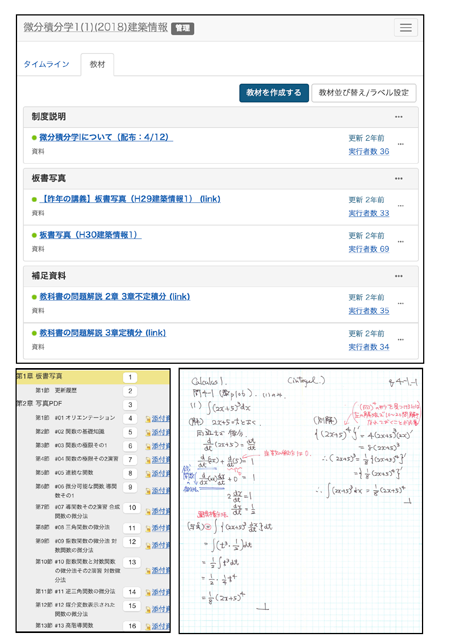 さらに、授業中に出した演習問題を学生に黒板や配布した用紙に書かせ、それを撮影もしくはスキャンしてWebClassに掲載することもしていました。これにより、授業での取り組みを記録として残し、学生が自分の解答や内容をあとから見直せるようにしています。