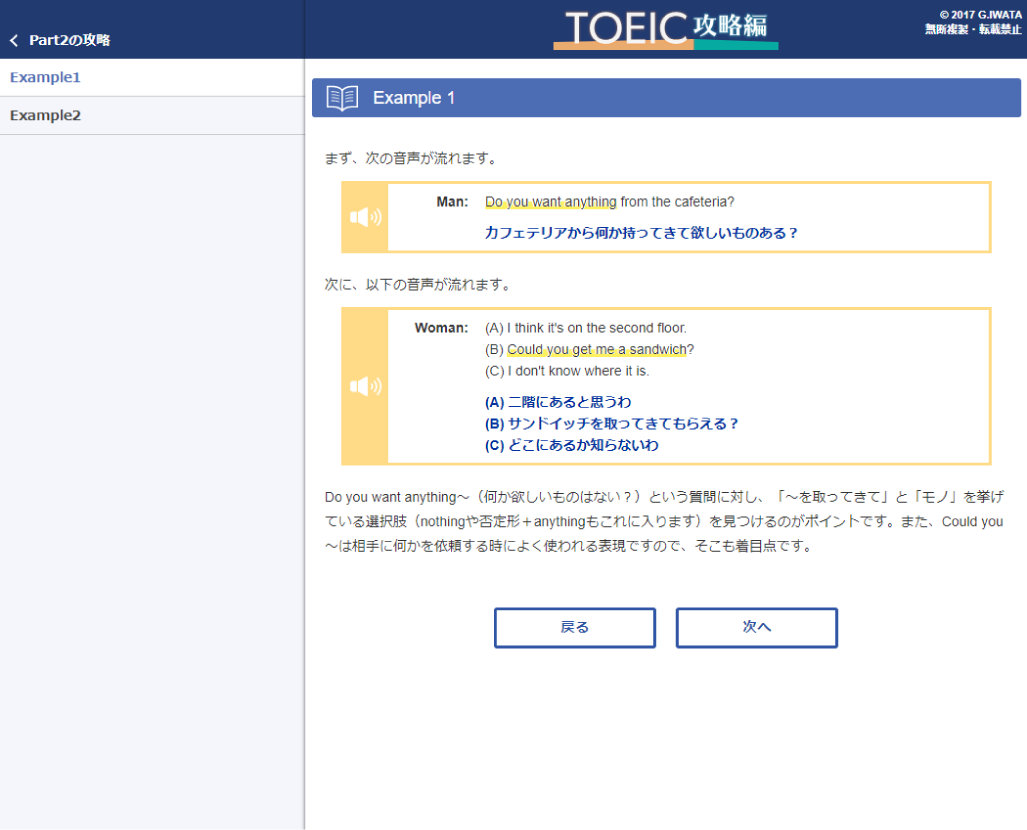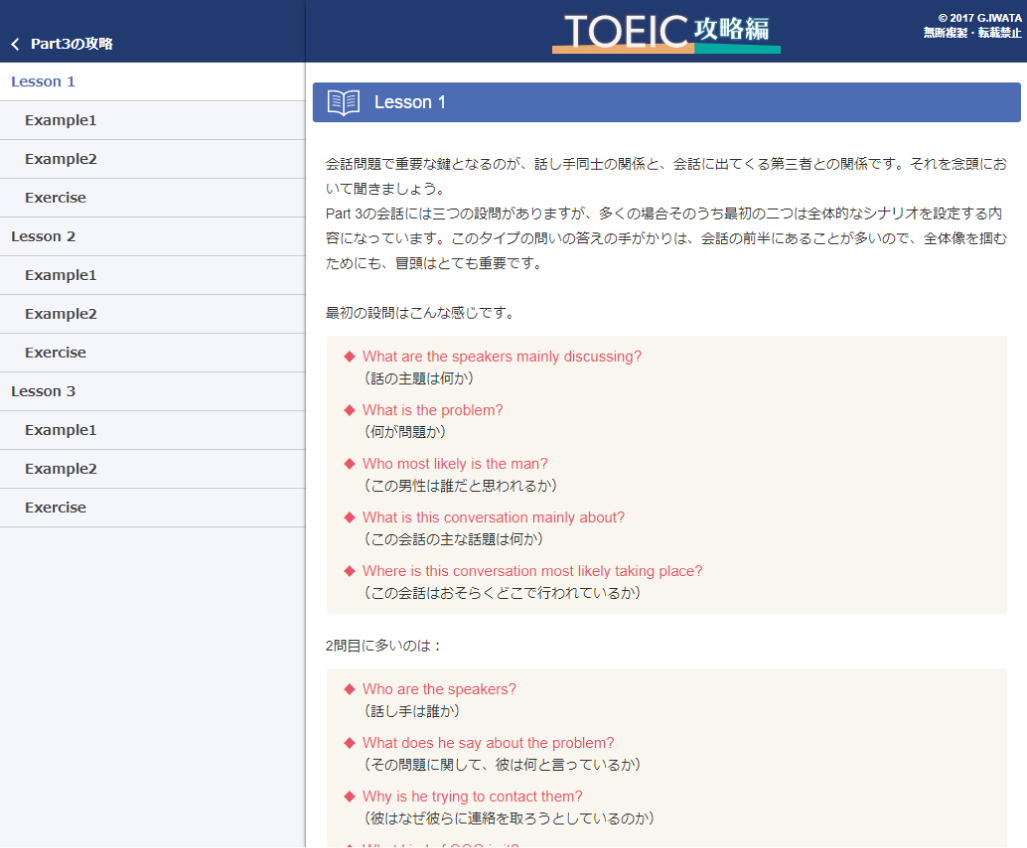 - Part3の攻略(3レッスン それぞれ例題4問、練習問題6問)