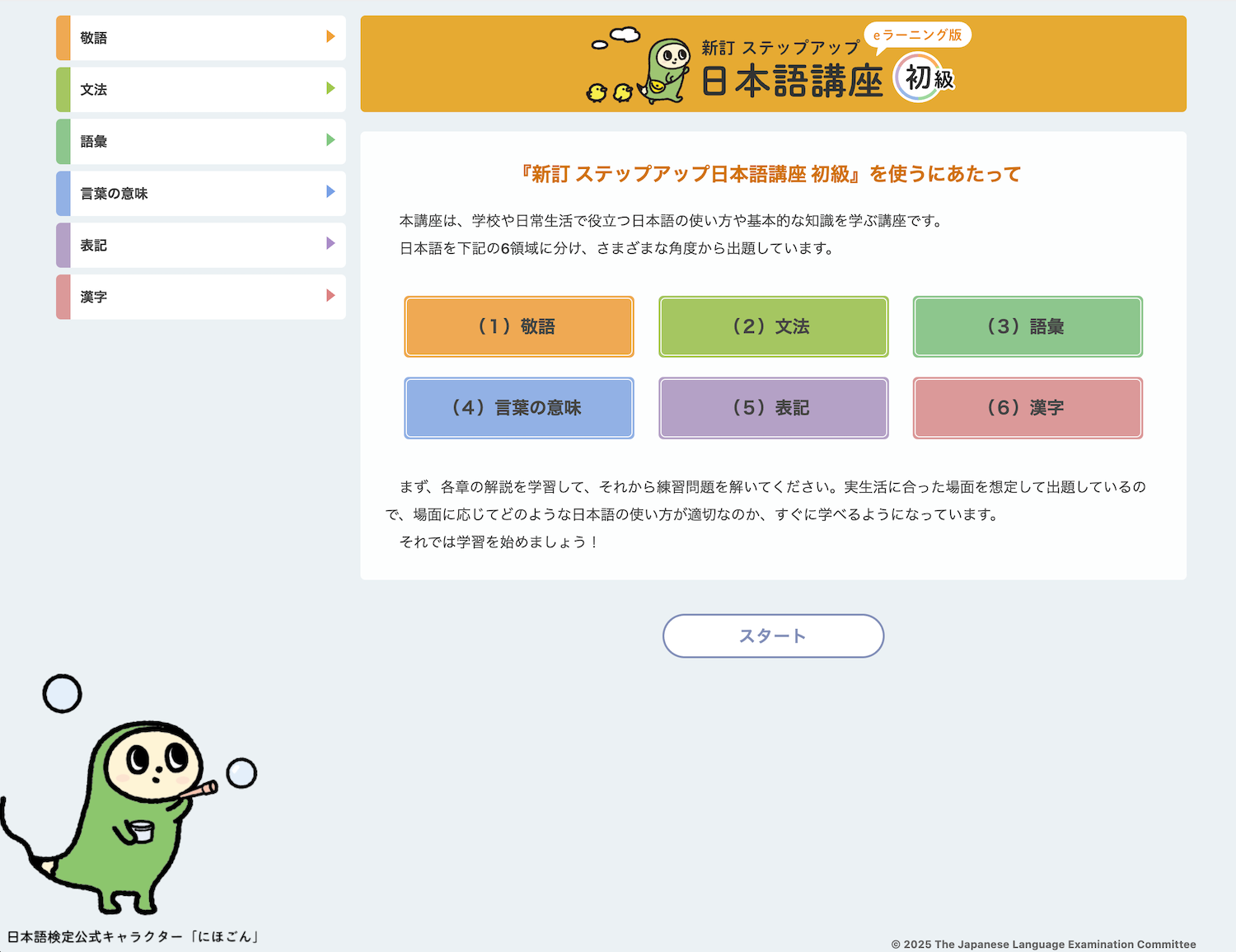 本教材は、東京書籍株式会社発行のテキスト『新訂 ステップアップ日本語講座 初級』のeラーニング版です。