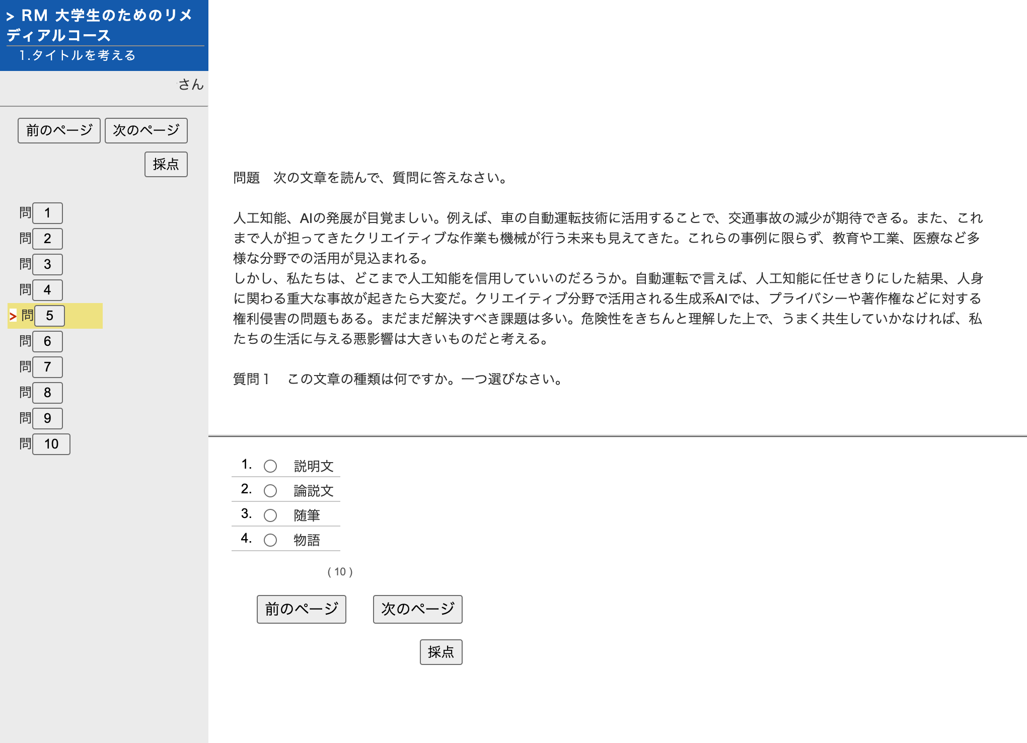 - 予測しながら読む(5題5問)