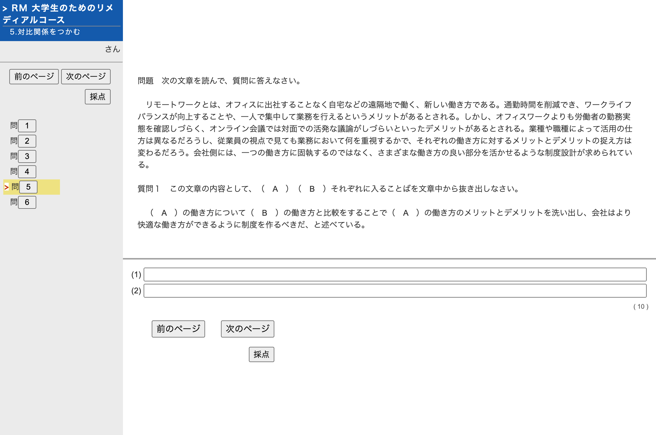 - 指示語と接続語に気をつけて読む(5題5問)
