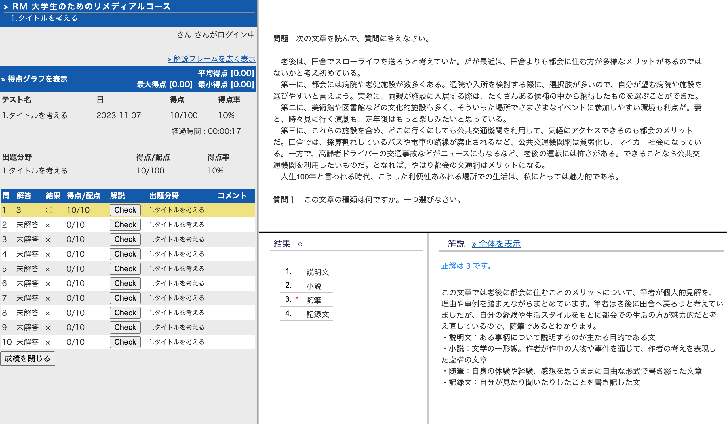 - 1〜10までの読解スキルを設定し、どのような問題に取り組んでいるのかを意識して、進めることができます。